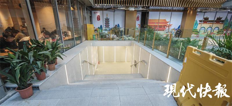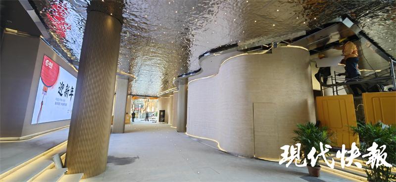 近日,现代快报记者来到南京新百A座一层的消防通道处,外围围栏上贴有施工提示的标语,走进通道内,现场施工正在有条不紊地进行,工人正在安装顶棚。据了解,改造前,这里通常为商场内各店铺运送货物和垃圾的通道,车辆进出频繁。据工作人员介绍,此处更新于2023年11月份开始施工,项目进程已完成大半。