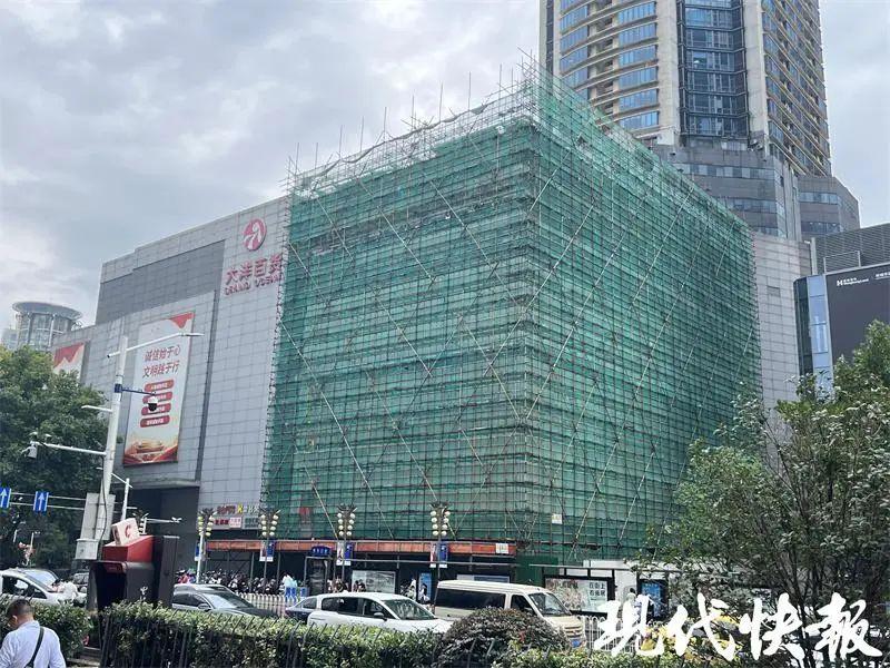 据了解,大洋百货原外立面为铝板幕墙,投入使用已有20年,外墙铝板造型有松动和脱落隐患。为消除高空坠物安全隐患,提升新街口中心商圈城市界面形象,大洋百货对商业裙楼东北方向一至顶层进行外立面出新,将原有部分铝板外立面改为玻璃幕墙立面。
