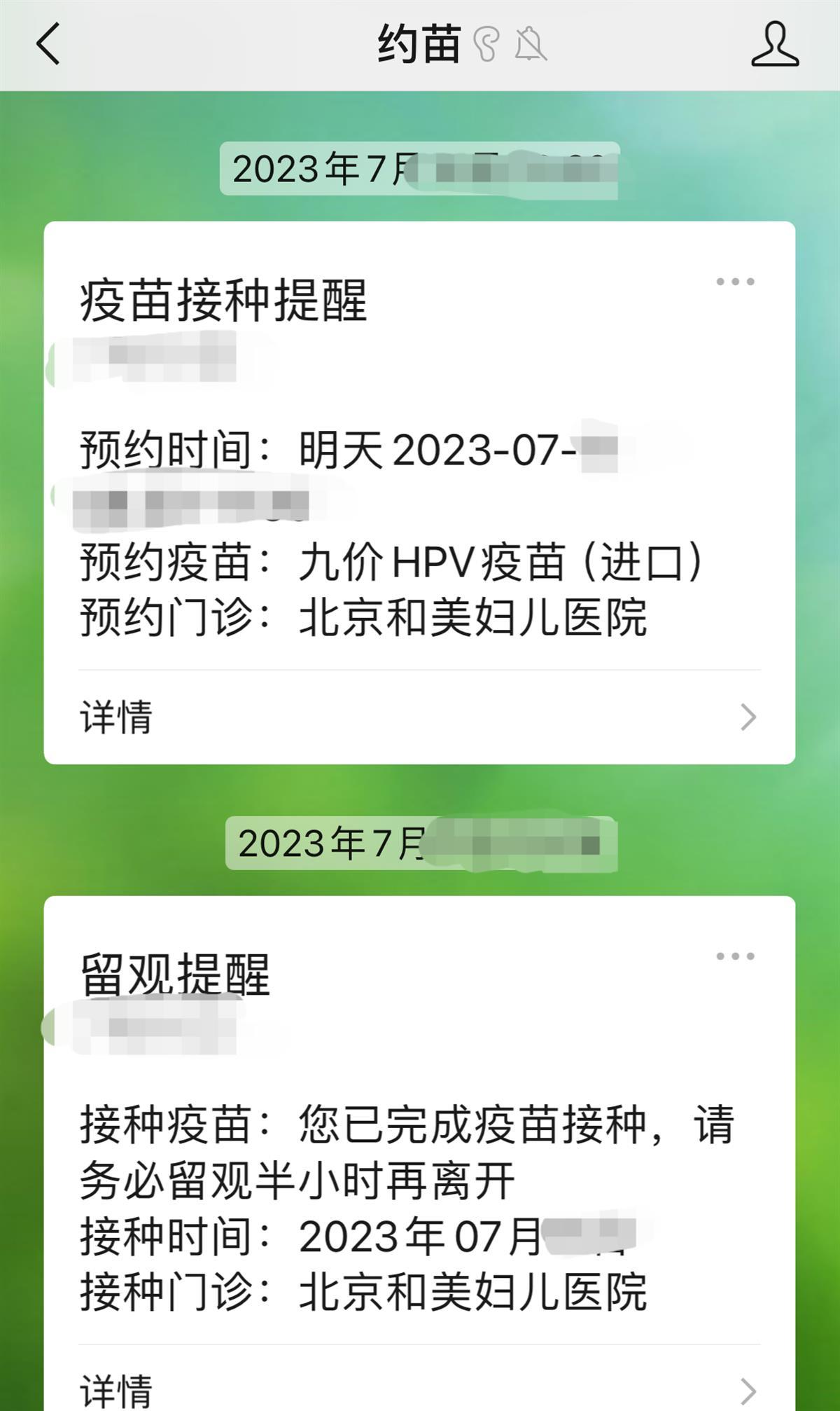 王晓表示,她看到信息后及时联系了平台方,客服称会帮忙反馈,后续就成功预约上了第三针。但没过多久,和美妇儿医院就关门停业了,第三针的预约接种时间为2024年2月。她与平台方多次协商,没有得到及时解决。