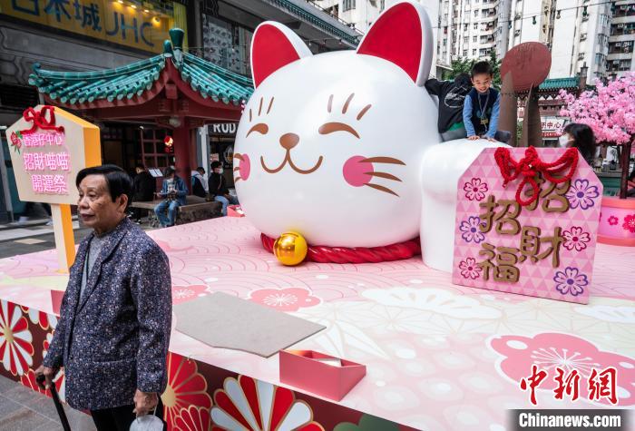 1月13日,一尊宽4米的香港最大户外“招财猫”雕塑布景在香港仔中心商场外亮相。当天起,香港仔中心商场举办“招财喵喵开运祭”活动,在公历新年伊始期间和中国农历新年前夕,为香港市民和游客增添喜庆“打卡”去处。