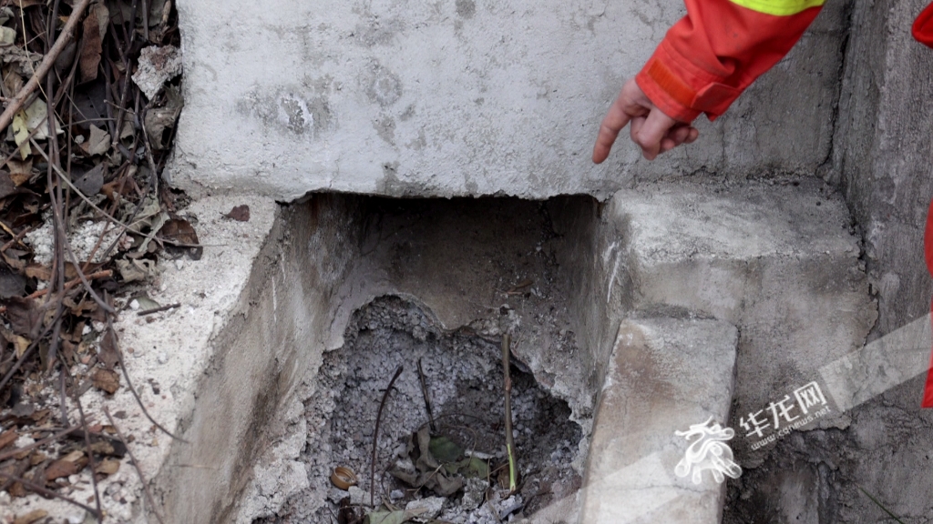 管道下方出口破拆痕迹明显。华龙网记者罗盛杰摄