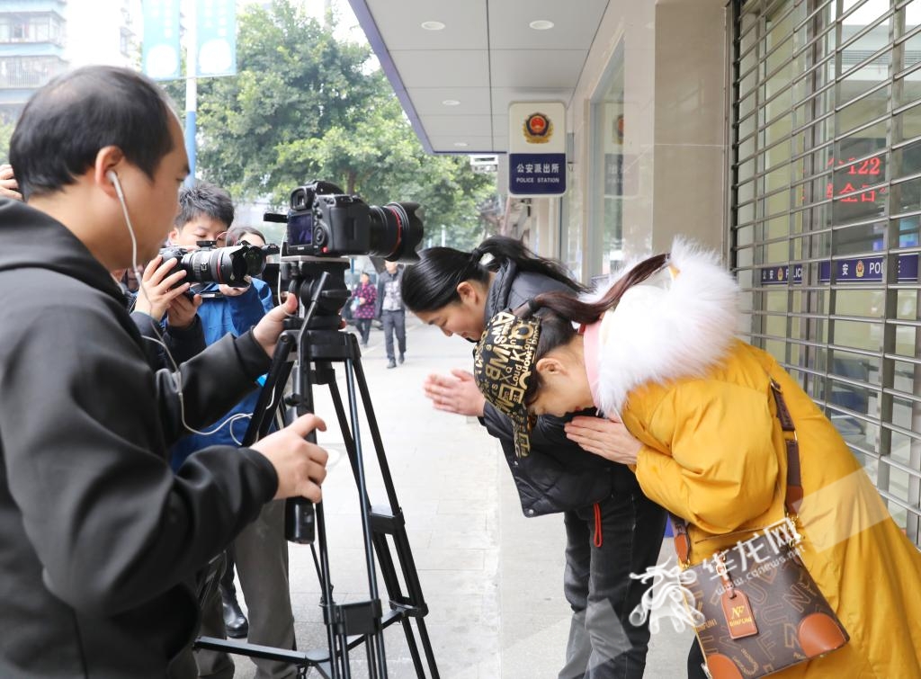 1月12日上午,在重庆市巴南区公安分局鱼洞派出所内,张莉一家将写有“警民一家亲遇难见真情”的锦旗,送到了民警手中。