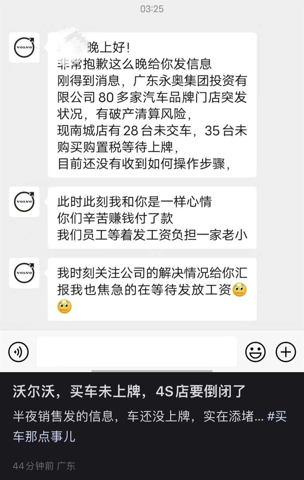 此外,在东莞阳光热线问政平台,2023年有多名员工投诉永奥集团频繁拖欠工资,还有消费者投诉永奥集团旗下4S店拖延交车。