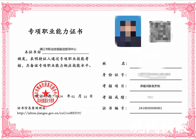 “河豚鱼的加工经营目前国家还没有完全放开,有了这个证件对我们从业者来说更规范,更有底气了。”前不久,从事餐饮行业三十余年的陈静取得了镇江市人社部门颁发的“养殖河豚鱼烹制”专项职业能力证书。现代快报记者了解到,目前,人社部门已颁发36张“河豚证”。