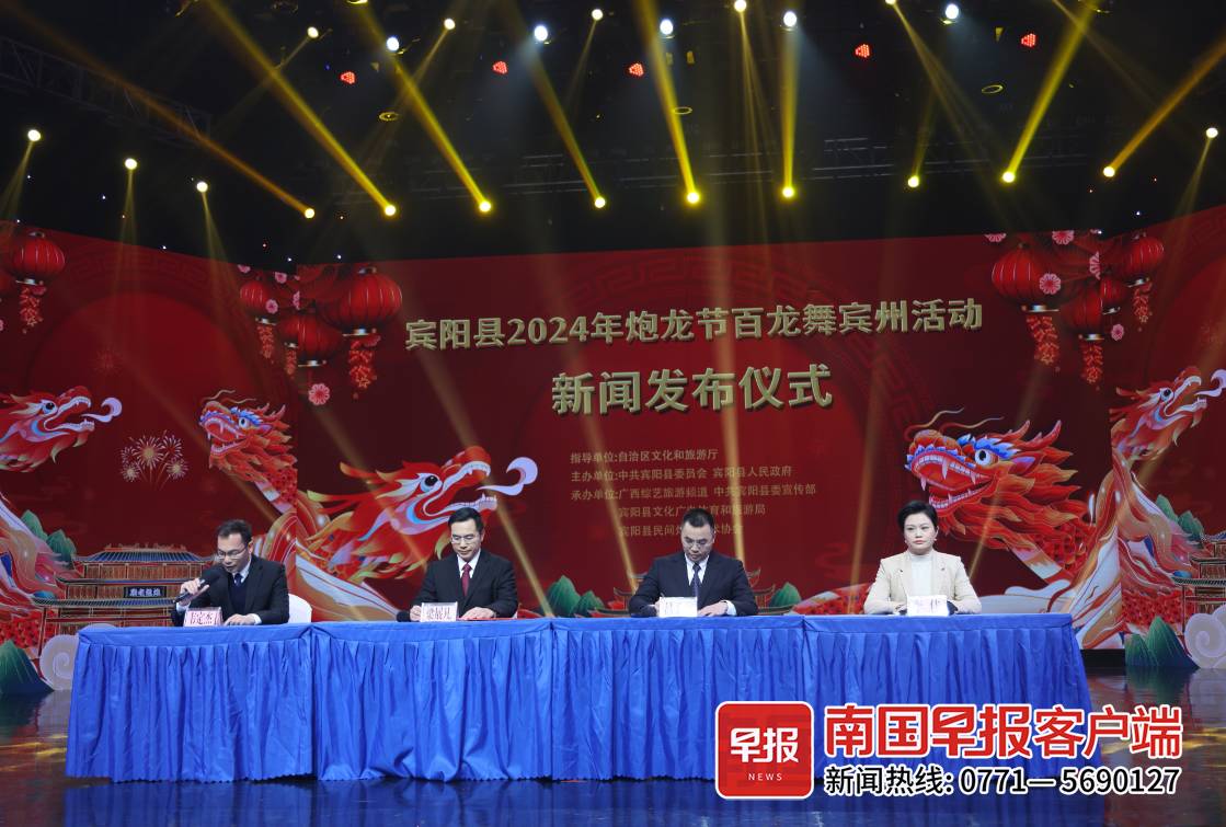 1月28日下午,记者从“宾阳县2024年炮龙节百龙舞宾州活动”新闻发布会获悉,据悉,为期9天的系列活动,内容丰富、精彩纷呈,正月十一当晚将有118条以上的炮龙激情起舞,与数十万市民尽情狂欢。