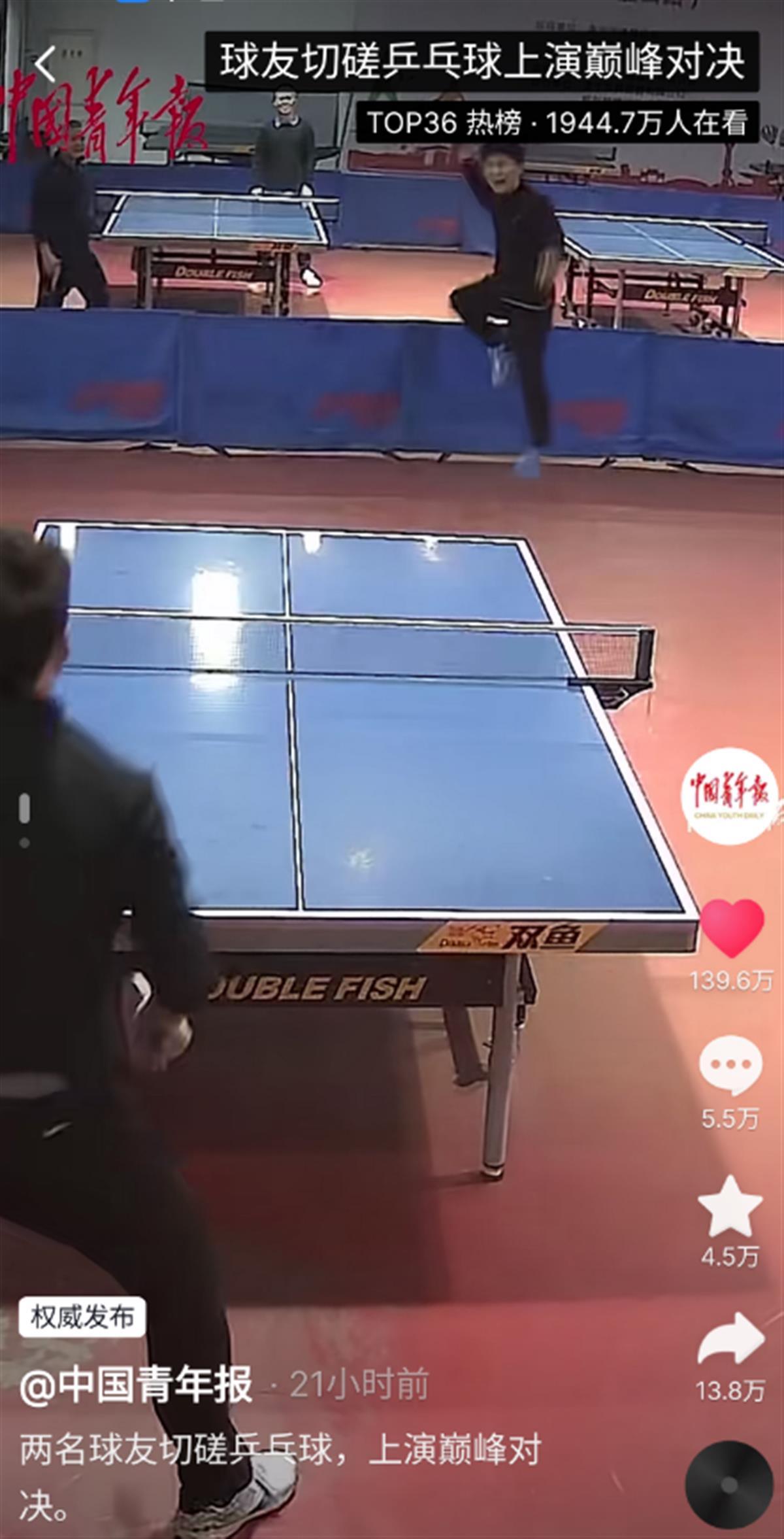 两球友切磋乒乓球上演巅峰对决(图源:中青报)