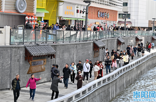 贵阳网·甲秀新闻讯 2月11日,正月初二,阳光明媚,正是出门游玩的好时节。记者走访河滨公园、甲秀楼、青云市集、太平路等热门景点和街区,随处可见的中国结、红灯笼、龙元素装置,看见处处是游人,处处是喜悦,一派红红火火的过年氛围。