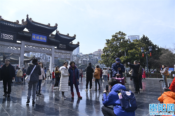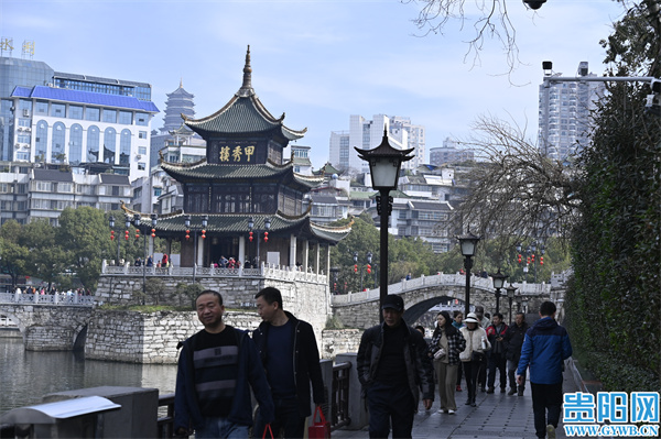 当天的甲秀楼人来人往,不时能听见带着外地口音的游客在南明河边有说有笑。“甲秀楼,始建于明万历二十六年(1598年)。哦!明万历年间建的,距今有500多年历史了!”来自重庆的李青,一边看手机一边给同行的妈妈读解甲秀楼的历史。她告诉记者:“我们大年初一就来了,这次旅行没有设定行程,打算在贵阳来一场citywalk,逛吃逛吃。”接下来,她们将前往青云市集。