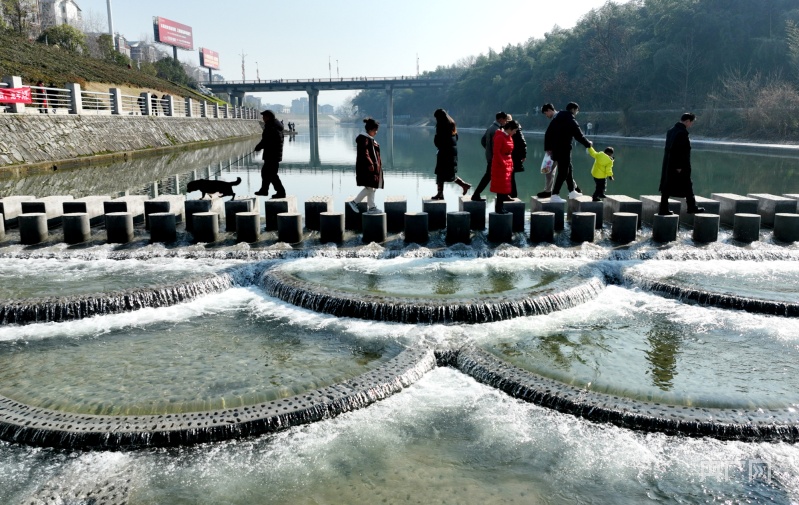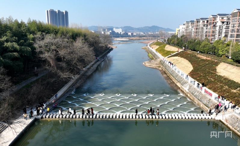 央广网怀化2月12日消息春节期间,湖南省怀化市麻阳苗族自治县县城锦江河段上刚建成的“鱼鳞坝”,迅速走红,成为麻阳苗乡新晋打卡点,每天吸引了数千群众前来游玩。