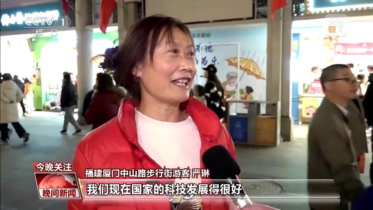 福建厦门中山路步行街游客严琳:我们可以通过网络拜年,也挺好的。我们国家现在的科技发展得很好,作为中国人,我们很自豪。祝我们的国家欣欣向荣、更加强大。