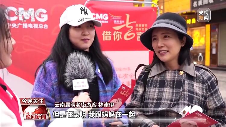 云南昆明老街游客林津伊:我觉得有家人在的地方就是家,虽然我的家乡在浙江,但是在昆明我跟妈妈在一起,一起去旅游,感受这里的风土人情,也觉得在这里过年特别幸福。