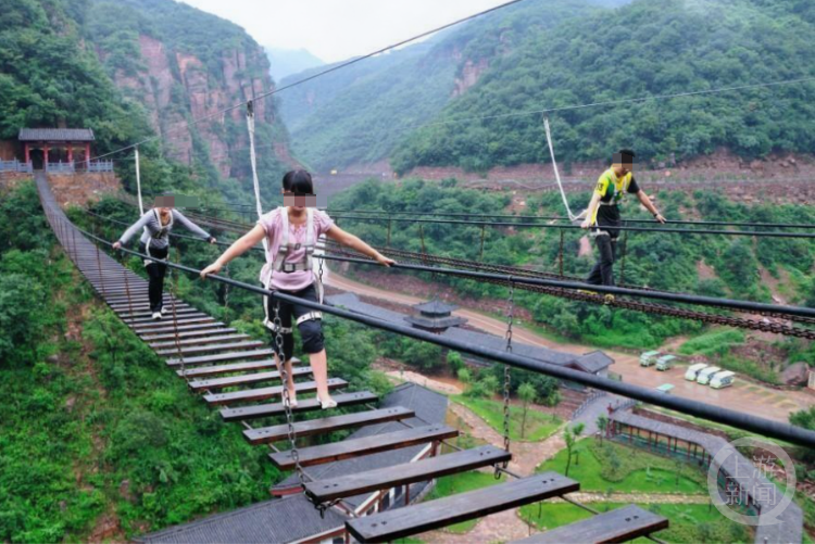 景区官网介绍,龙潭大峡谷网红桥项目名称为高空钢索桥,是建在峭壁上的全长88米、高36米的高空铁索桥。有网友担心意外发生可能与网红桥有关,新安县文旅局工作人员回应称:“(该)项目是2023年7月经过了第三方检测,没有问题,年限是一年。”