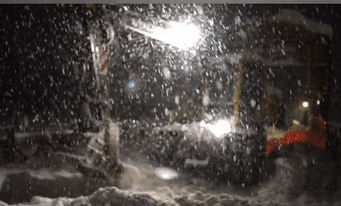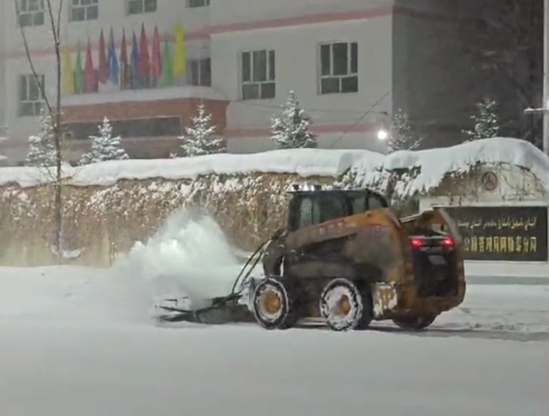 2月16日凌晨,阿勒泰市有关部门连夜清扫积雪。视频截图/雪都融媒