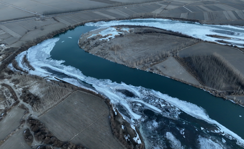 冰水交融,给焉耆盆地增添了春的气息。2月16日,和静县段流过的开都河情景。确·胡热摄