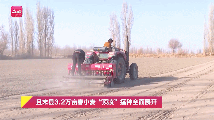 近日,新疆巴音郭楞蒙古自治州且末县3.2万亩春小麦“顶凌”播种工作全面展开。为确保在最佳播种时期内完成春小麦播种,当地全力抓好粮食生产工作,统筹做好种子、肥料、农药等生产资料调剂、调运和储备工作。