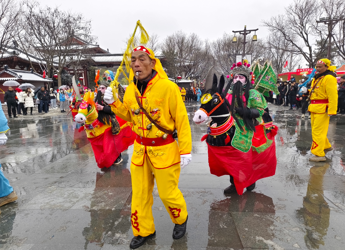 2月21日(正月十二),元宵节来临之际,在西安市临潼区大唐华清城广场上,具有350多年历史的非遗项目临潼代张杨竹马表演,吸引了众多市民和游客前来观看,现场呈现出一片热闹、喜庆的氛围。