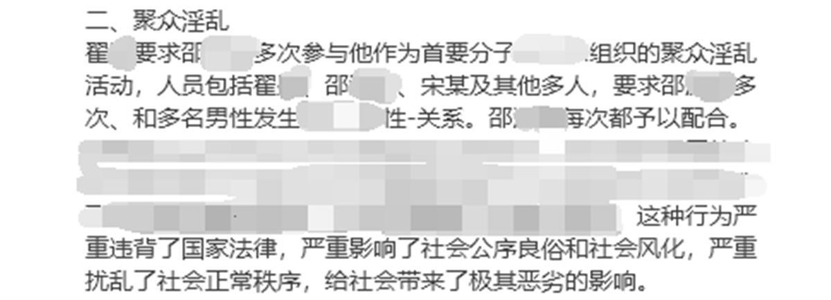 此事在网上引发关注,对于举报人所称的邵某某与翟某曾多次参与聚众淫乱活动,有网友认为这种行为涉嫌违法犯罪。