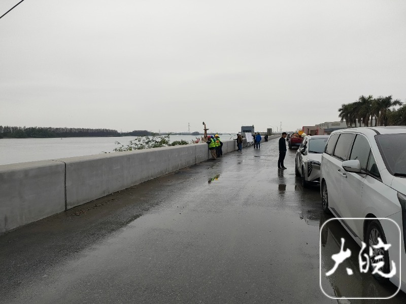 2月24日上午,大皖新闻记者回访事故现场时看到,有身穿红色救生衣的工作人员在值守,桥下有施工单位工作人员在巡视查看。