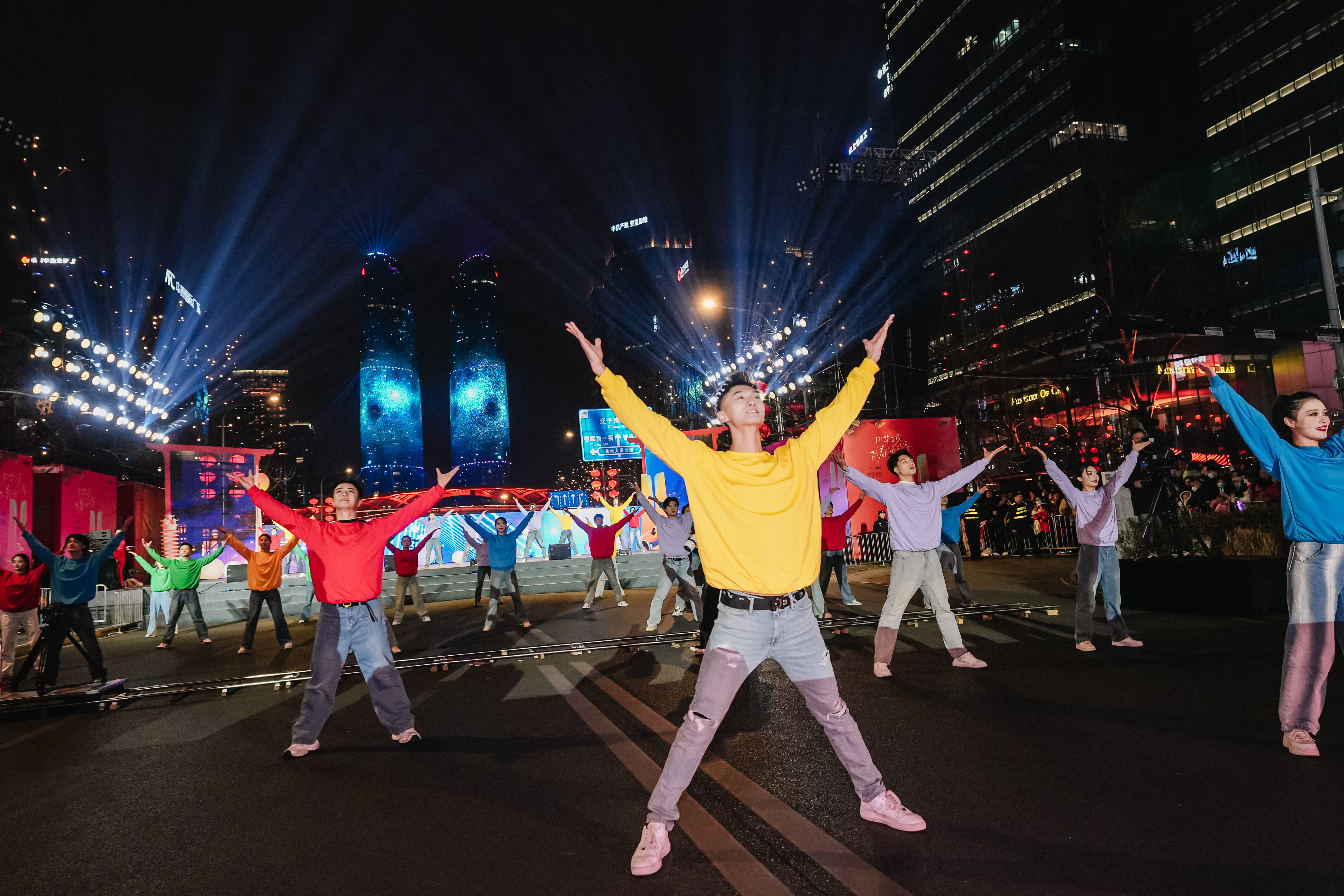 率先登场的街舞表演活力十足,6位街舞爱好者动作行云流水、舞动全场。随后,由小朋友们装扮的一群小小“熊猫”来到舞台,尽显呆萌可爱,带来快乐的气氛。春节热映电影《热辣滚烫》的热辣蜕变曲《一切都来得及》,让大家在新年更爱自己。而集乒乓球、篮球、武术、骑行于一体的体育运动秀《青春嘉年华》,则让全场观众感受到青春的力量……