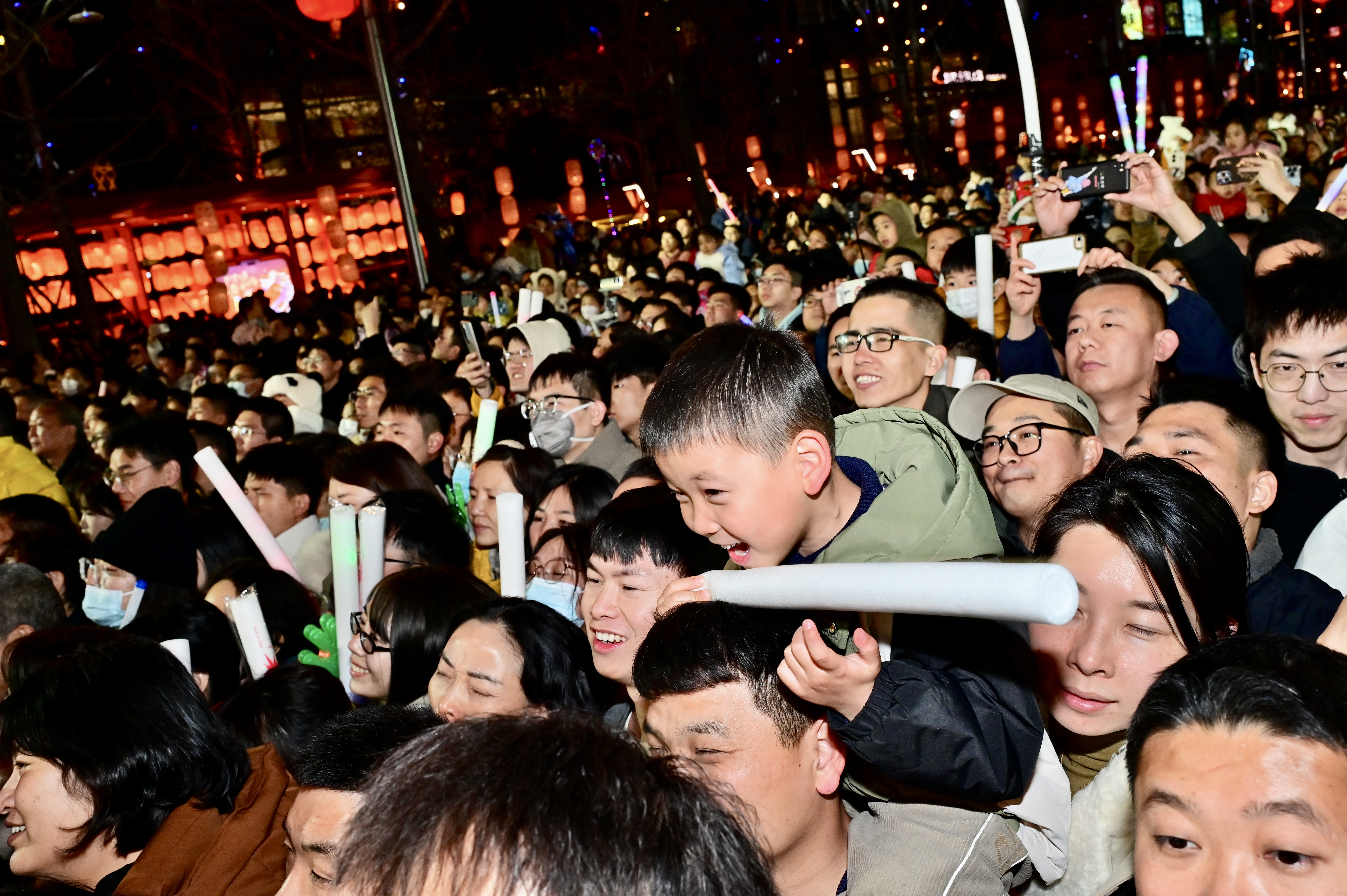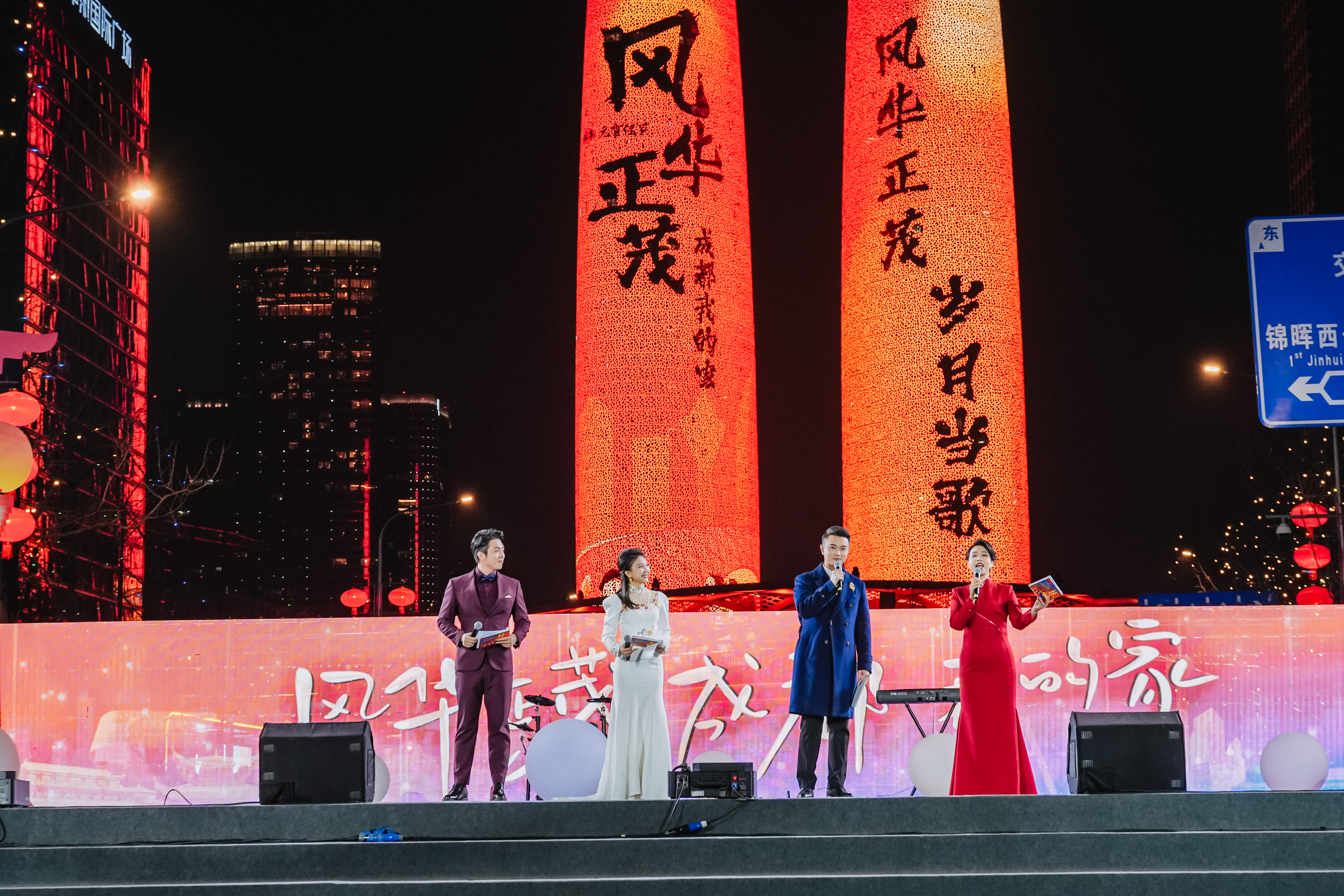 “新年好呀,新年好呀,祝福大家新年好”“朋友一生一起走,那些日子不再有”……在主持人的带领下,交子大道上的市民游客齐声合唱,大家脸上洋溢着幸福的笑容,共同欢度元宵节。