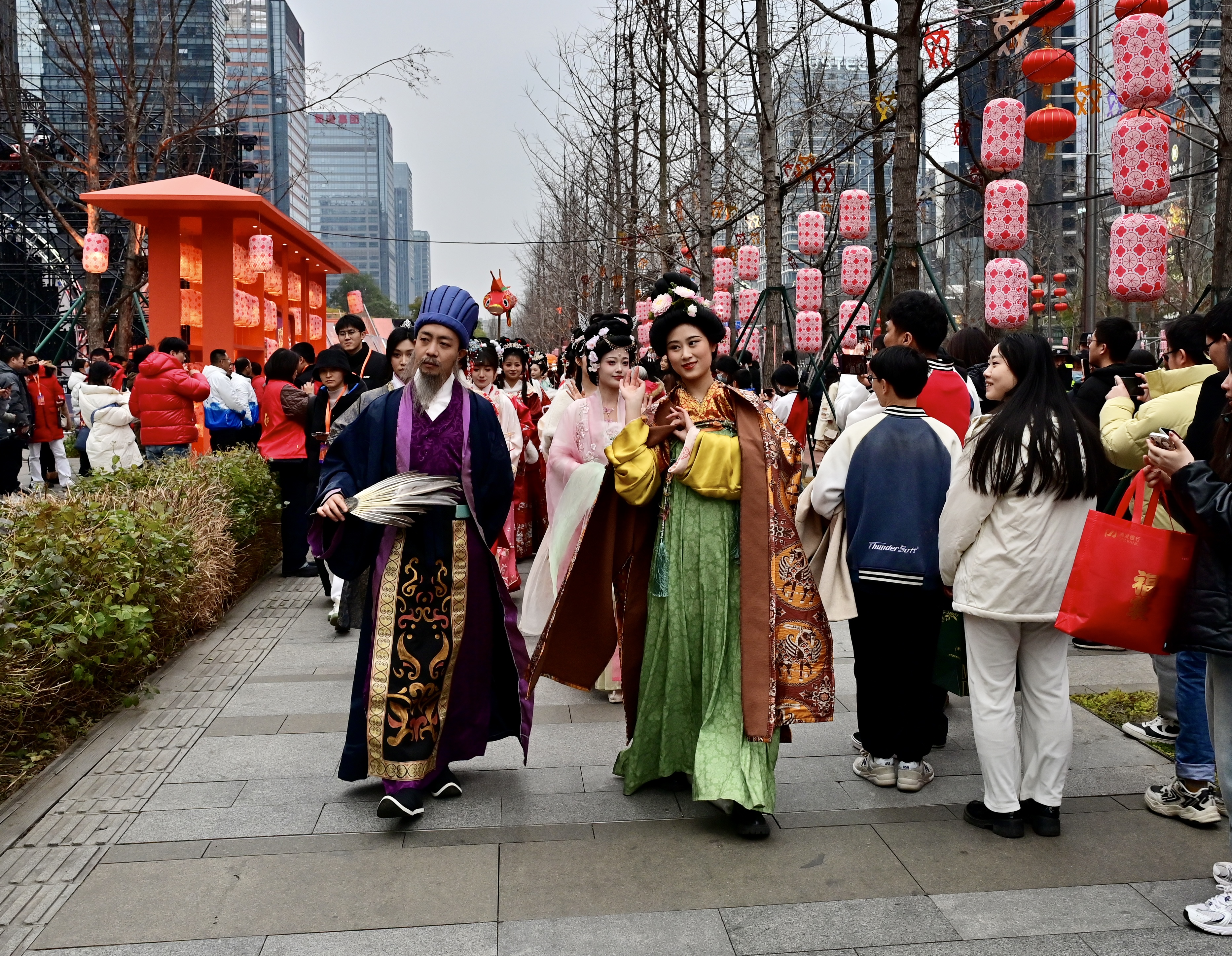 2月24日,“风华正茂,成都我的家”成都高新区龙年元宵节主题活动在交子大道掀起高潮。丰富多彩的表演轮番上演,非遗和潮流文创项目亮相市集,青春游园会带来沉浸式体验……交子大道上人头攒动,尽是烟火气,处处幸福声。