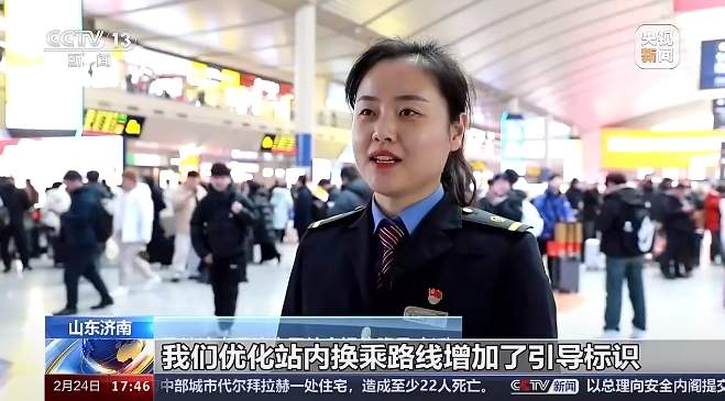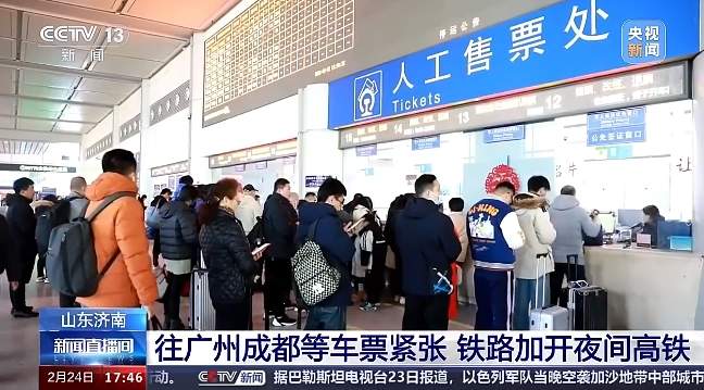 央视在新闻中说,记者从国铁济南局了解到,这几天,随着返程客流持续攀升,从济南前往上海、广州、成都等方向的列车车票十分紧张,济南局通过加开夜间高铁满足旅客出行需求,针对购买联程车票的旅客,车站也采取了多项措施,方便旅客站内中转换乘。