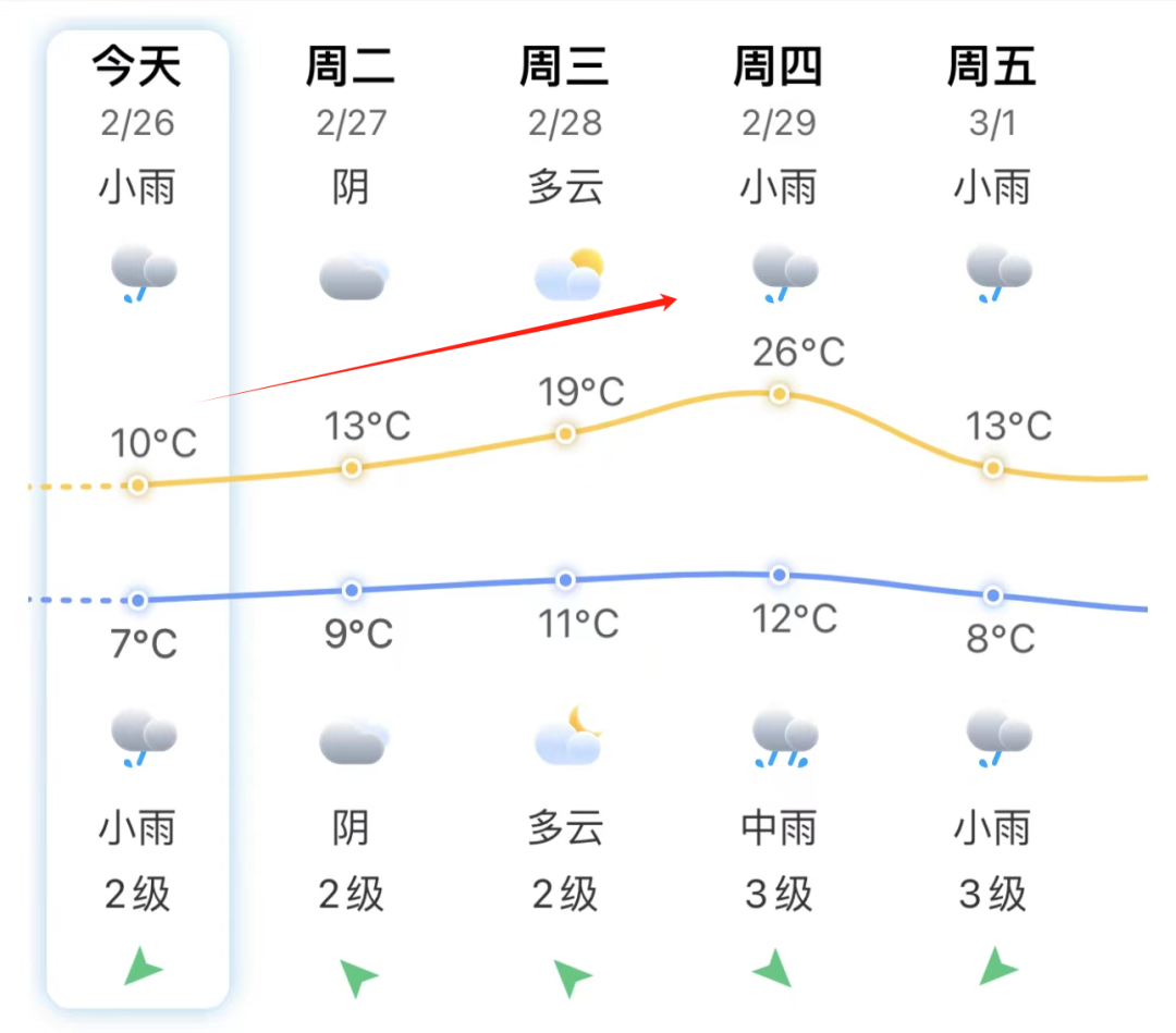 26日白天到夜里,阴,东风2级,气温9℃~11℃。