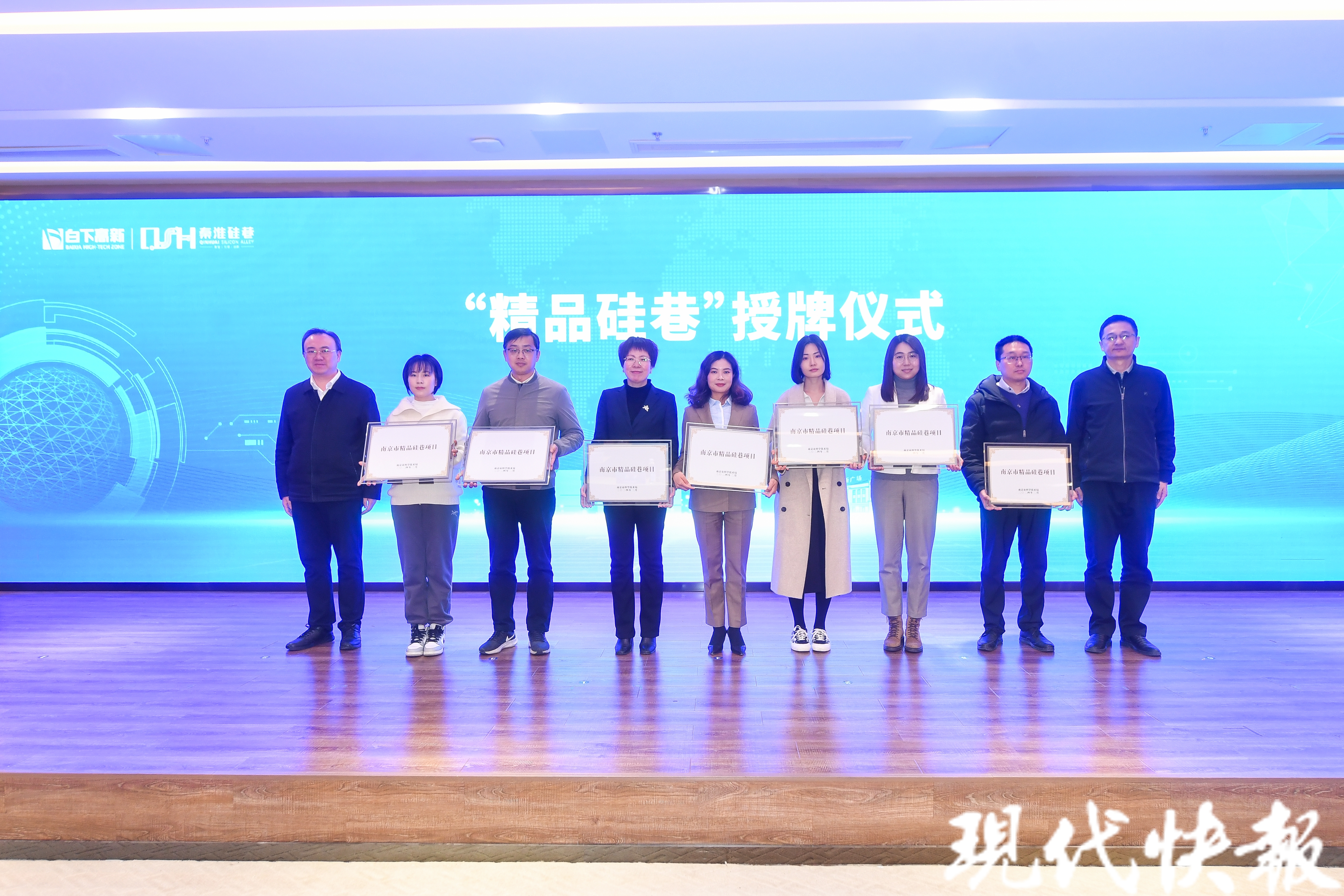7家“精品硅巷”建设项目单位代表现场获授牌。同时,韩国大田广域市(省)政府、中国江苏省(南京)代表处首席代表徐大元,江苏民族贸易促进会秘书长陆中奕,江苏省苏商发展促进会常务副会长俞文勤获颁“秦淮硅巷产业招商大使”聘书。