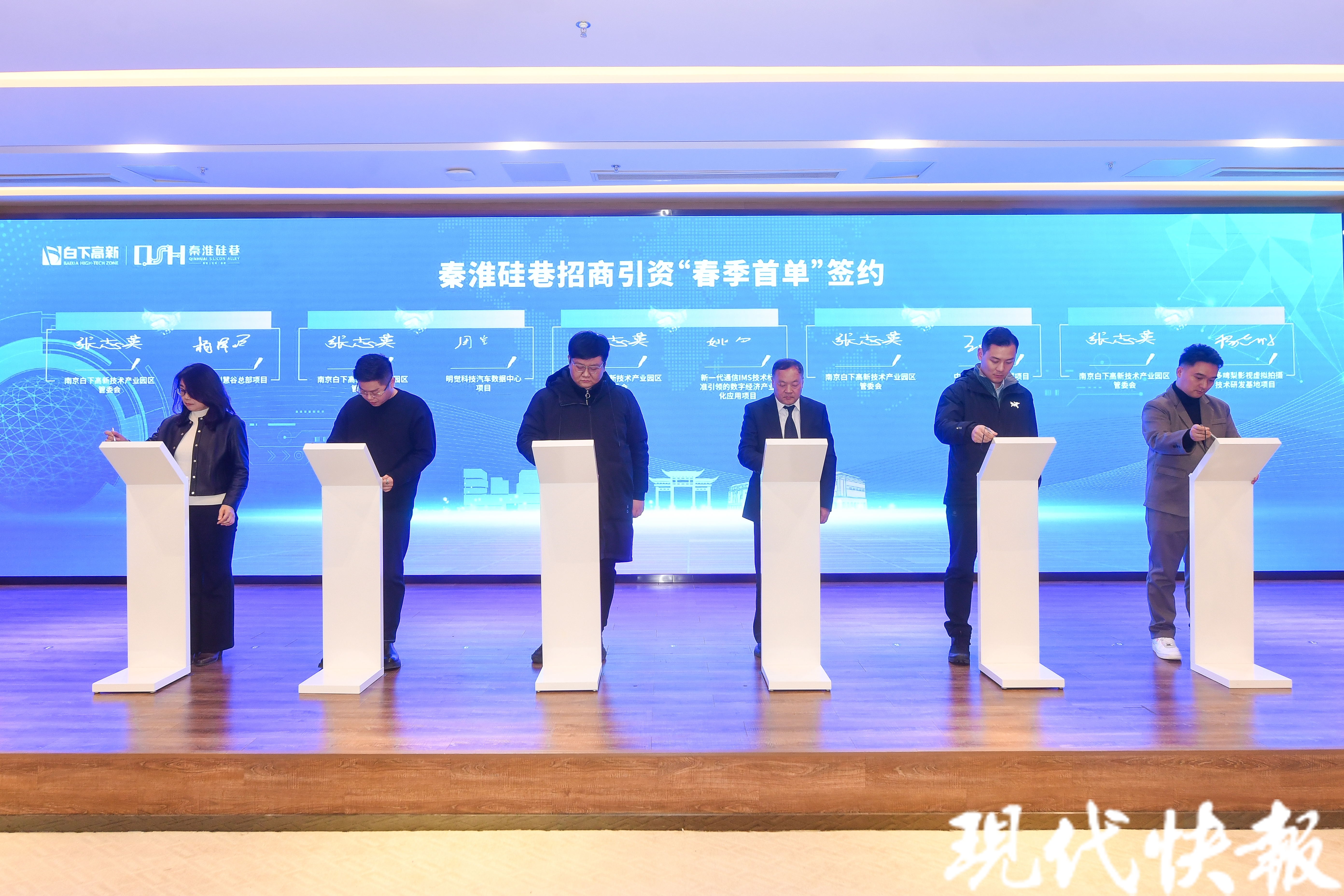 现代快报讯(通讯员秦高萱记者徐红艳)2月27日,产业为本联动招商——秦淮硅巷高质量发展暨招商引资“春天行动”动员大会举办。现场,南京秦淮硅巷招商引资“春季首单”成功签约,5个高质量项目即将在秦淮“开花结果”。