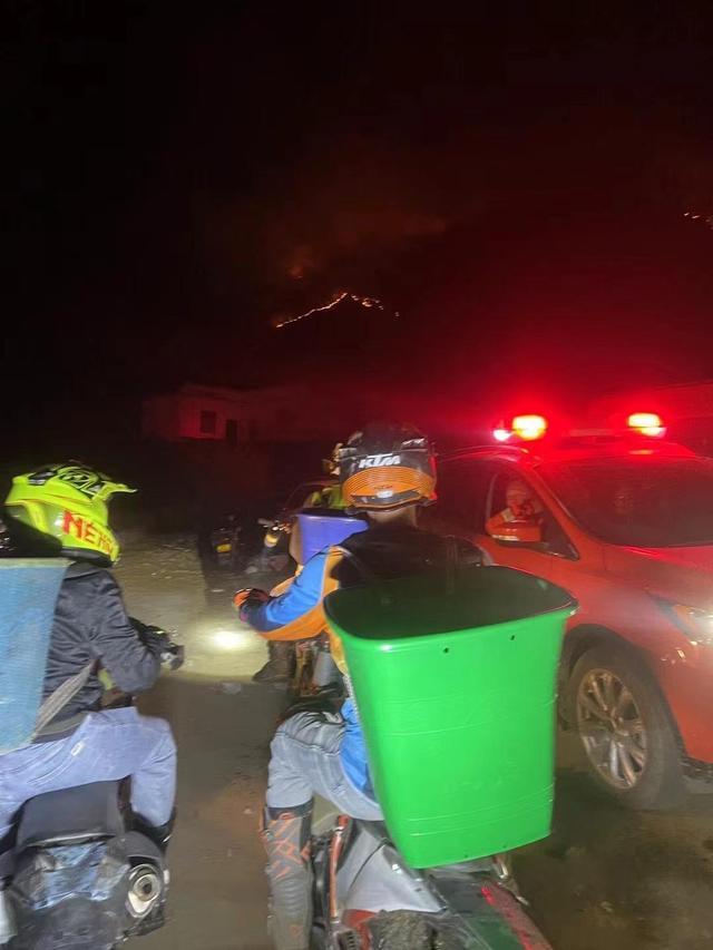 张先生介绍,除了运送物资,熟悉山林路线的越野摩友们会在夜间带消防员进山。越野小分队另一名组织者罗志华表示,前来增援的消防人员在没有进山交通工具的情况下,从道路封锁地徒步到起火山脚,大约需要十多分钟,摩托车骑行只需三五分钟即可抵达。