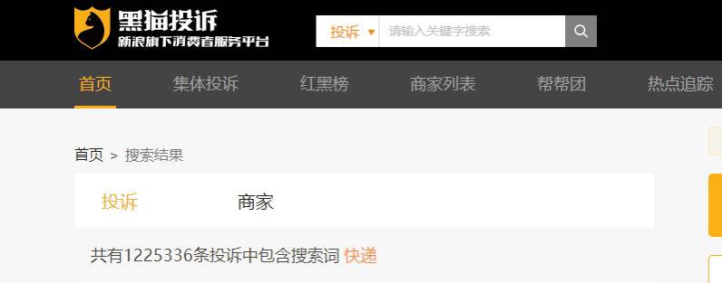 黑猫投诉平台中有超120万条快递相关投诉网页截图
