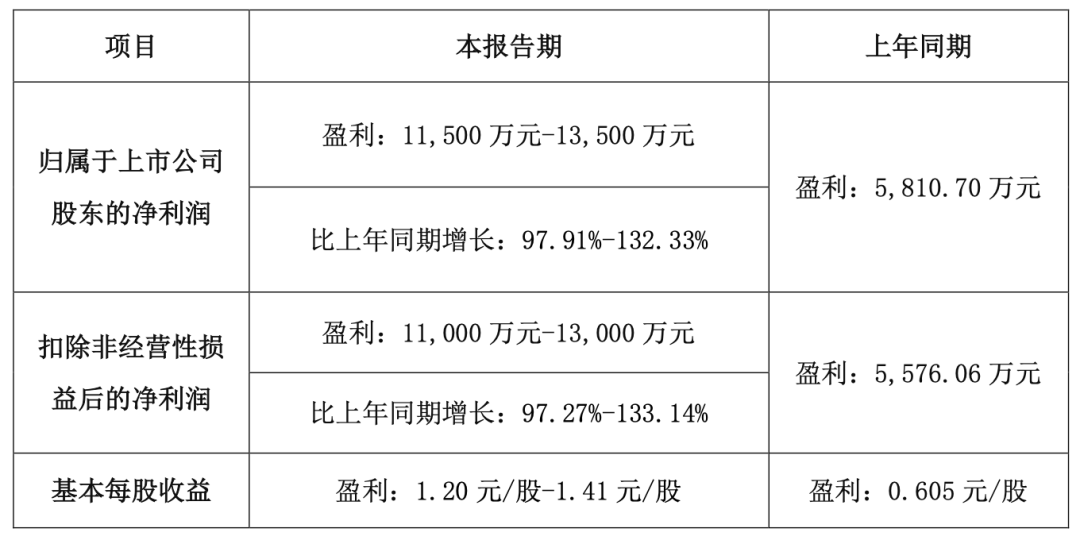 据朝阳科技2023年度业绩预告,报告期内,公司预计实现归属于上市公司股东的净利润1.15亿元至1.35亿元,同比增长97.91%至132.33%。基本每股收益1.2元—1.41元。