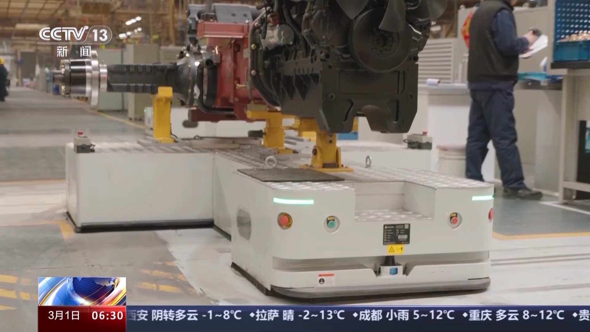 这是一个生产大拖拉机的农机工厂,更是一个具备国际领先水平的现代数字化项目区,记者看到,传统的产业工人身边多了“数字工友”一起干活:这是一部自动化的AGV转运小车,也叫做自动搬运机器人,它搬运的可不是小零件,而是拖拉机底盘。这个环节如果靠人工转运,费时又费力,如今在它的帮助下,几秒钟就可以完成。