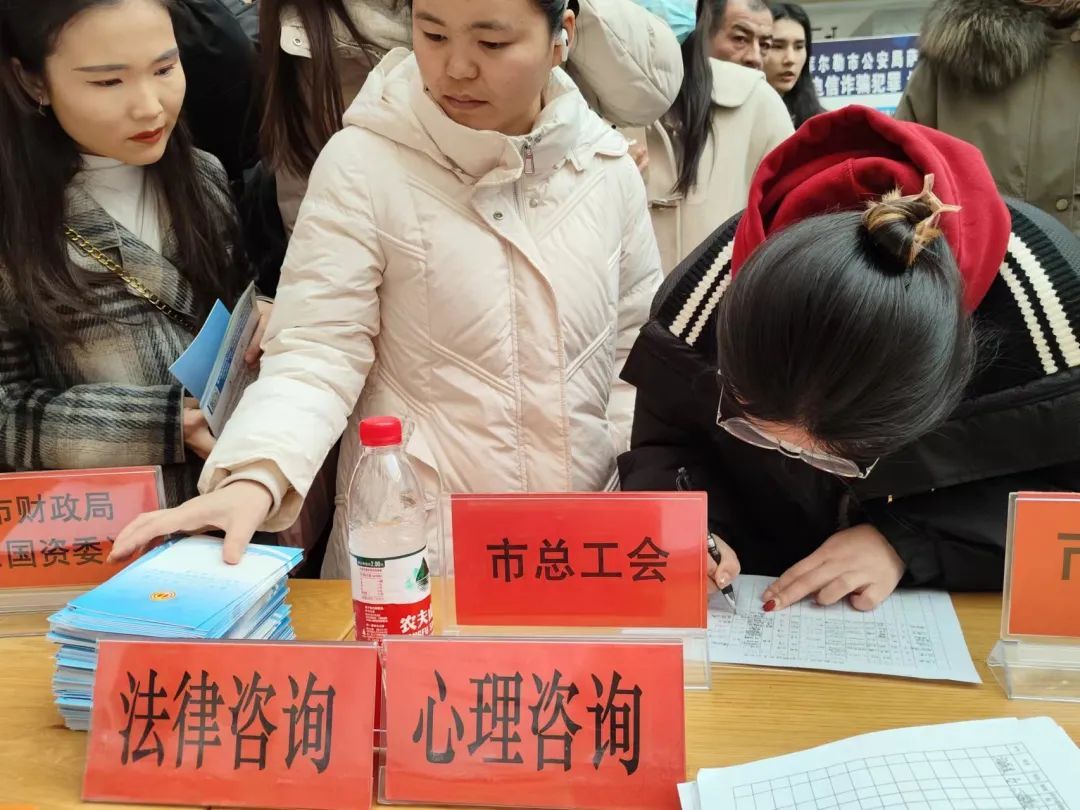 市总工会还在现场设立政策咨询台、法律咨询台、心理咨询台,为求职人员面对面提供就业帮扶和心理疏导,解答相关就业法律政策,对求职人员关注度较高的签订劳动合同、社会保障等相关政策进行详细解答,同时发放《民法典》《工会法》《工资集体协商条例》《女职工劳动保护法》等宣传资料560余份,切实为求职者解决就业相关疑问,引导求职人员依法维护自身合法权益。