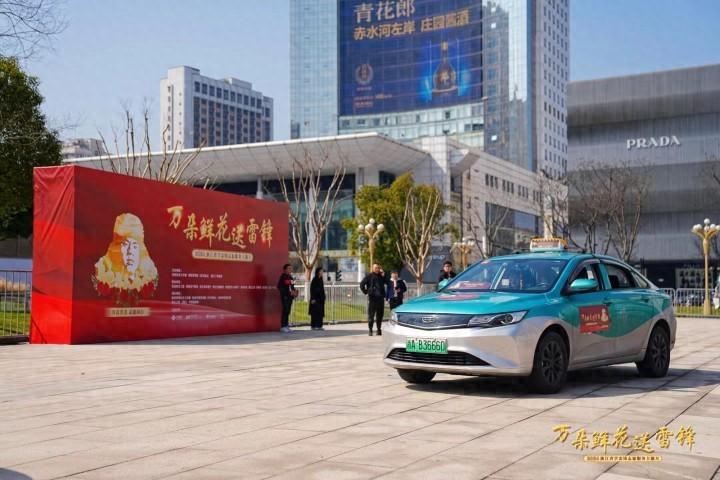 3月3日,一辆辆 “万朵鲜花送雷锋”献花车队从杭州武林广场驶出,把一束束鲜花送到“活雷锋”手上。
