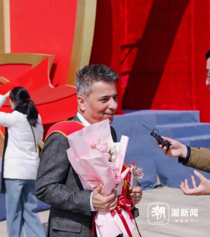 20年来一直开展浙江义乌的涉外纠纷调解工作,被称为“国际老娘舅”的伊朗籍商人哈米今天也收到了鲜花,他说爱心无国界,希望能为社会多做贡献。