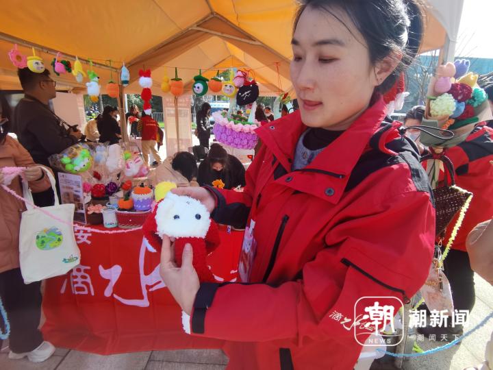 “我可以报名参加吗?”“我能不能也织一条围巾送给偏远地区的小朋友?”“巧手暖心”公益编织是现场最“火”摊位之一。