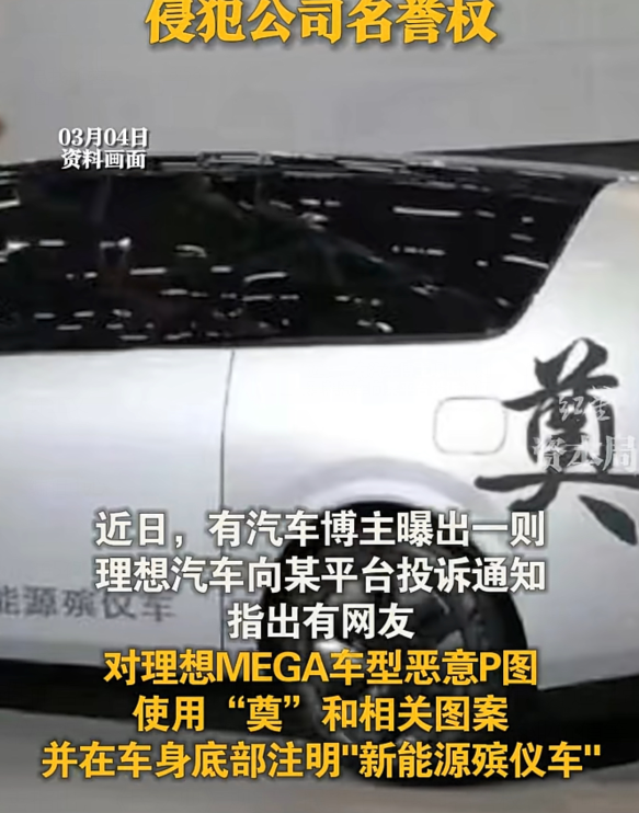 该通知函指出,2024年3月2日,今日头条平台“成熟小猫”等用户对理想汽车的新品MEGA车型进行恶意P图,将“奠”和“新能源殡仪车”等字样贴于车身,严重侵害理想汽车的产品形象及品牌声誉,侵害了理想汽车的名誉权。理想方面要求今日头条平台的相关内容作删除等处理。