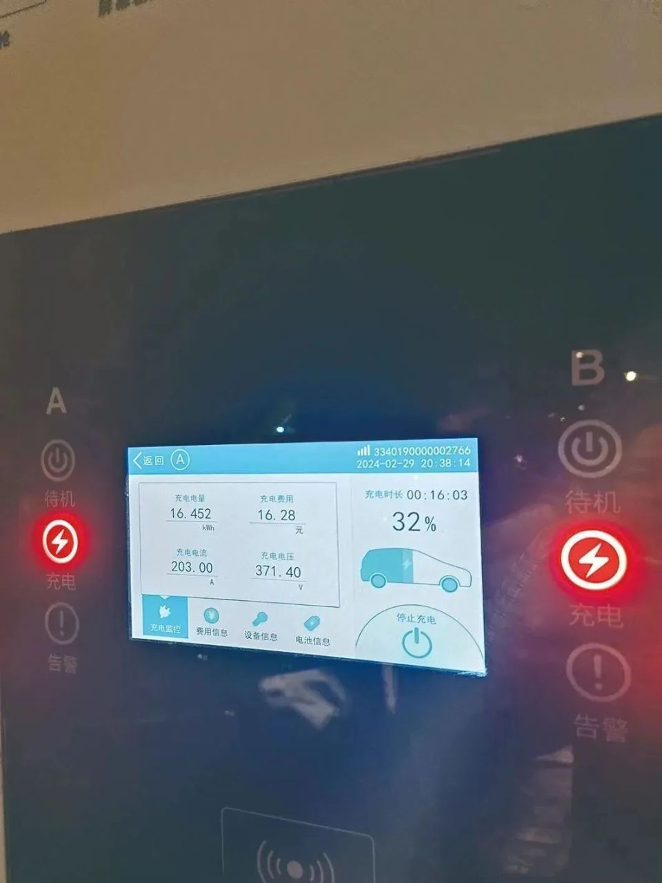 “这里充电免停车费,单价0.99元/度,算同时段周边最便宜的充电桩。”徐先生说,他的车电池容量约60度,额定续航425公里,冬天实际只能跑360公里,每次电量剩余10%就要充电。徐先生拔充电枪时,充电桩显示“充电16分钟、充电16.452度、费用16.28元”。差不多一分钟一度电,一度电一元钱。