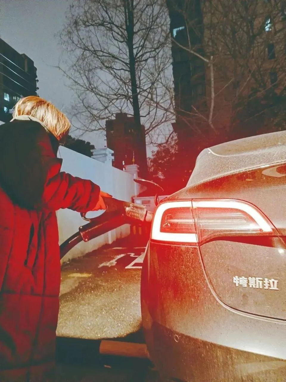 白天,王小姐依然在抢单位的慢充桩,特斯拉有快、慢充两个接口,慢充对电池更好,充满要8小时,上班充下班开刚好,但单位只有一个区域的充电桩对特斯拉开放,抢充电桩比以前更难,经常要去商业快充桩充电。