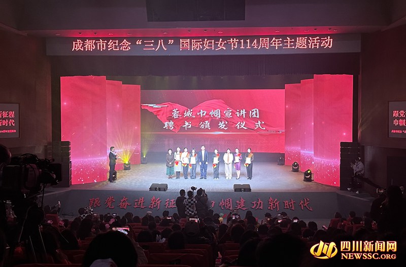 四川新闻网-首屏新闻成都3月6日讯(记者 张颍 摄影报道)3月6日下午,成都市妇联举办了“跟党奋进新征程 巾帼建功新时代”成都市纪念三八国际妇女节114周年主题活动。旨在进一步激扬巾帼之志,汇聚巾帼之力,积极投身建设中国式现代化万千气象成都图景。