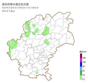 3月6日15时至3月7日15时,贵阳贵安共出现33站小雨,最大降水量为清镇新店1.7毫米。