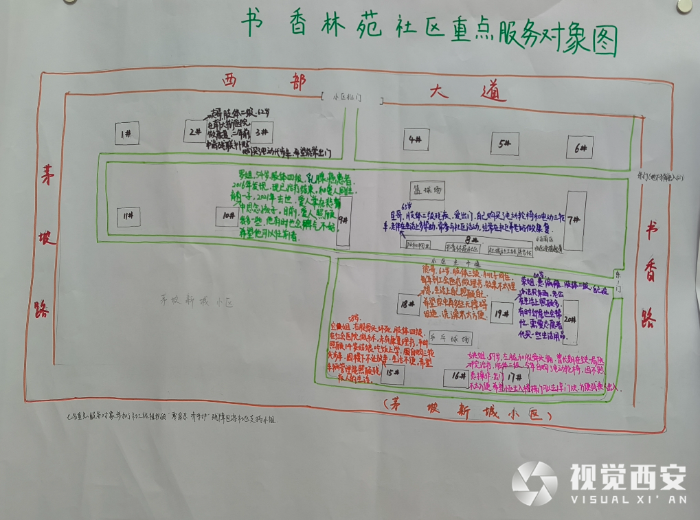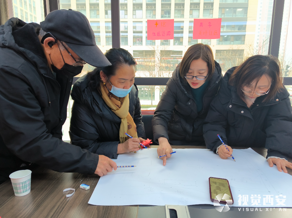 近期,雁塔区杜城街道社工站里展示的一张张社区资源图十分受辖区居民欢迎,这些图,是社工们邀请居民亲手绘制的社区“版图”。居民们都说,这是汇聚社区资源的“藏宝图”。