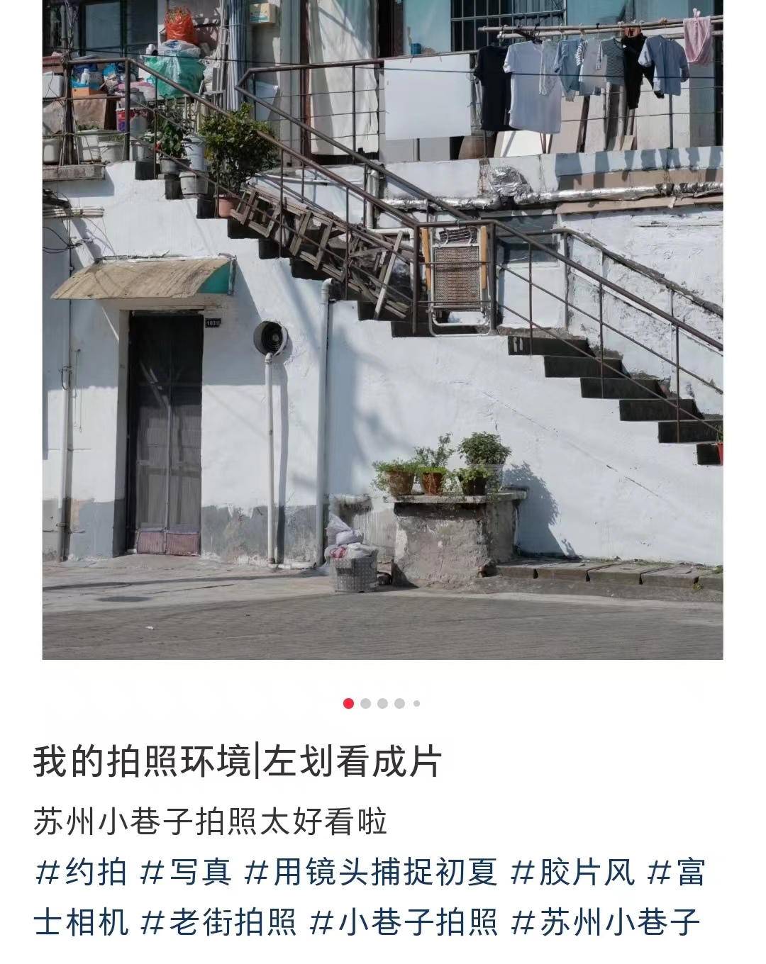 不仅外地游客会专门过来打卡,一些定居在苏州的新苏州人,以及苏州本地人也慕名而来。红星社区书记李瑾璘说道:“去年,来苏州山塘街游玩的游客路过这里时,发现这个楼梯很有年代感,随手一拍都是满满的电影质感,将拍的照片发到了网络平台,没想到就火了起来,还吸引了很多摄影师前来拍照。去年会有很多年轻的小姑娘,小伙子过来拍照,最近发现一些中年人,老年人也会来这里寻找过往的回忆,记录下这种穿越时空的感觉。”