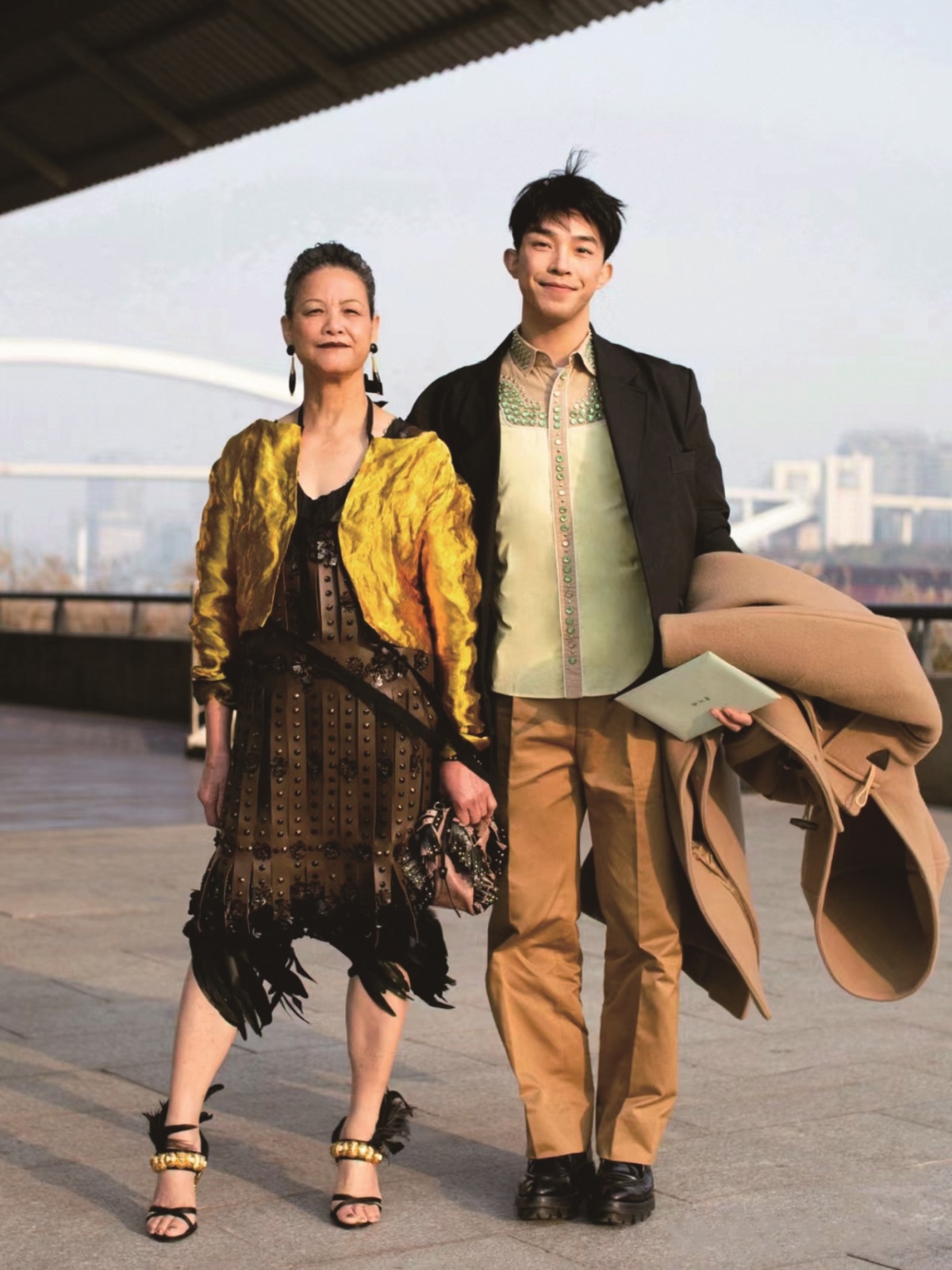 覃女士如今已在上海生活了一年多,走过了上海的四季。在社交媒体走红后,覃女士开始收到杂志和品牌抛来的橄榄枝。她出席活动、参加街拍,和儿子一起拍摄写真,和老伴一起登上杂志……生活充实且新鲜。
