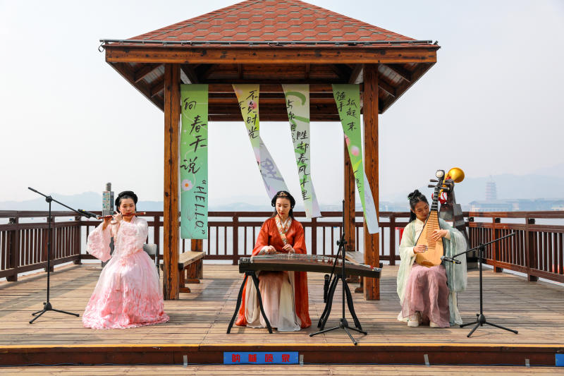 3月16日,北京雁栖湖景区以“‘栖’待遇见你 趣玩雁栖湖”为主题,举办开园活动。该活动持续16、17日两天,推出汉唐服饰巡游、传统礼乐大赏、古风市集三大主题活动。在现场,向游客展示表演的巡游队伍身穿传统汉唐服饰,伴随古筝、竹笛、琵琶等乐器音乐,沉浸式欣赏汉唐古典文化之美。
