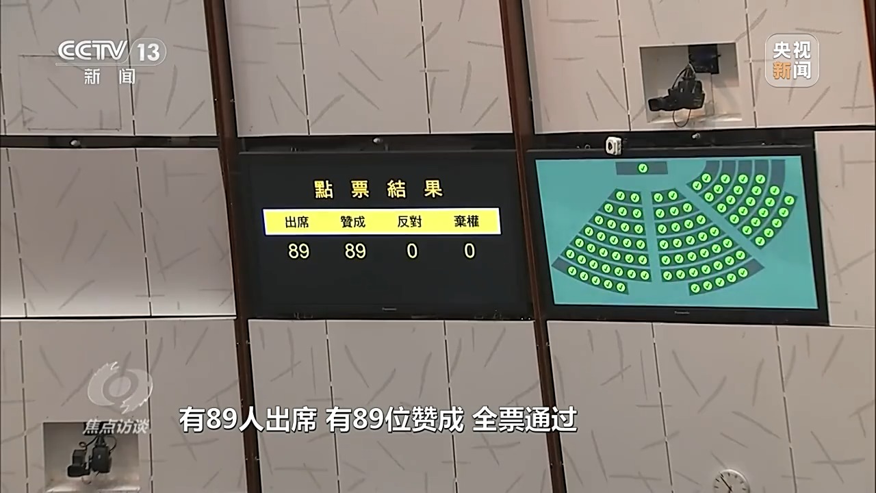 3月19日,香港特区立法会三读以全票通过《维护国家安全条例》。相关条例法案将经过行政长官签署以及刊宪等程序后正式生效。