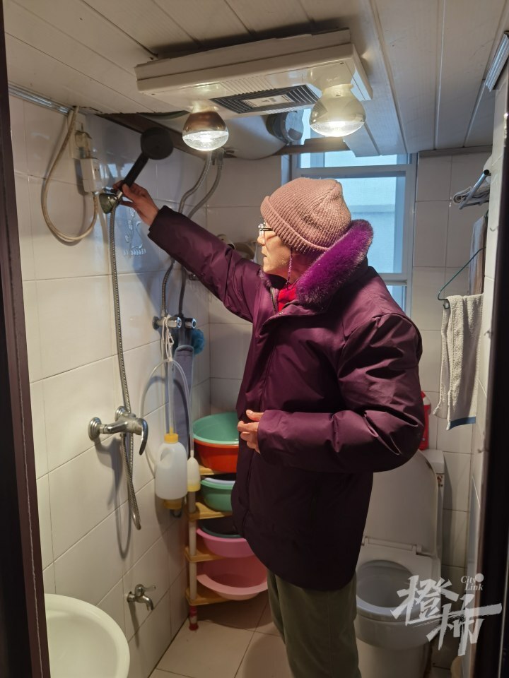 “我们家的厕所很小,和浴室是并用的,大概只有4平方米,没有干湿分离。装了两个浴霸灯,也不是那么暖,我年纪大了,一脱衣服就容易感冒。年纪大了,在家里洗澡需要坐在一个小凳子上,拿莲蓬头往身上冲水。洗一次澡,要花二三十分钟。”