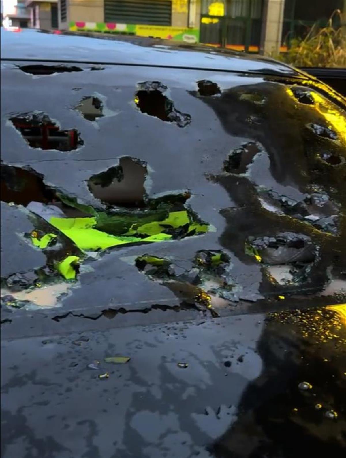 还有一位车主告诉记者,自己的车也被砸坏了,目前已送至4S店,等待保险公司理赔。还有车主称,自己今年刚好没买车损险,只能自付修车费,一个月工资估计没了。