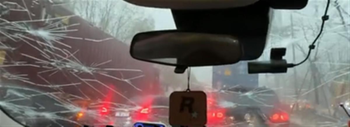 有车辆后挡风玻璃被砸成“筛子”(视频截图)